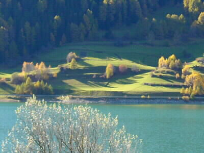 Clear autumn day at the ReschenseeKlarer Herbsttag am Reschensee
