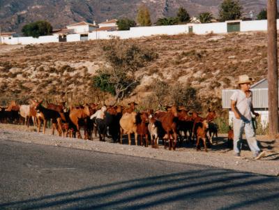Flock of goats an their master at Frigiliana, AndalusiaZiegenherde und ihr Chef in Frigiliana, Andalusien