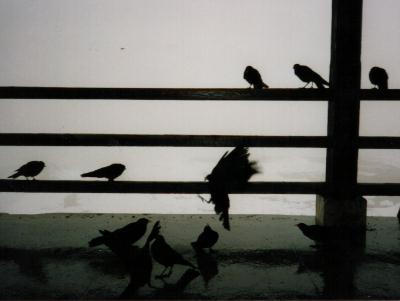 Jackdaws hiding from a blizzardBergdohlen verkriechen sich vor einem Schneesturm