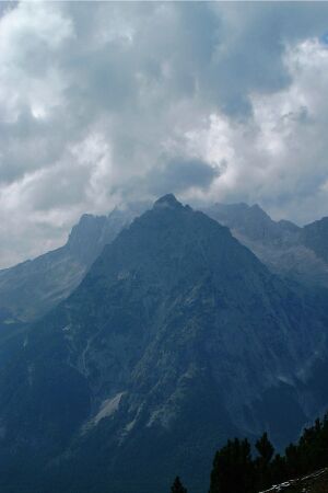 View from the Arnspitze towards the Tyrolian DreitorspitzeBlick von der Arnspitze zur Tiroler Dreitorspitze