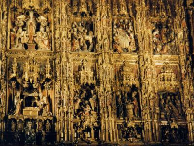 Gold-plated altar at the cathedral of SevillaVergoldeter Altar in der Kathedrale von Sevilla