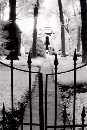 ungewöhnlichen Film recht dramatisch zur Darstellung gebracht werden. Die meisten der Polaroid Transfers wurden auf einem alten Friedhof in St. Louis aufgenommen, die Infrarot-Bilder in den Missouri Botanical Gardens in St.