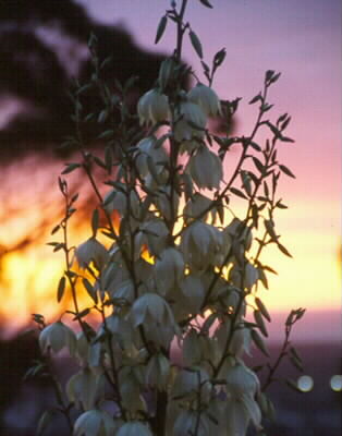 Yucca in full bloom at duskYuccablüten im Abendlicht