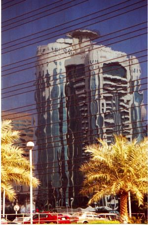 Mirror glass skyscraper in Dubai, EmiratesSpiegelung in einem Hochhaus in Dubai, Vereinigte Arabische Emirate