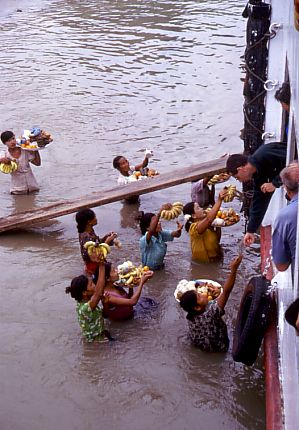 Selling fruit to Ayeyarwady travellersFrüchteverkauf an Reisende auf dem Ayeyarwady