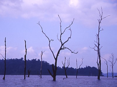 Dead trees at the Khao Sok National Reserve Rachabrapha lakeAbgestorbene Bäume im Rachabrapha-Stausee, Khao Sok Nationalpark