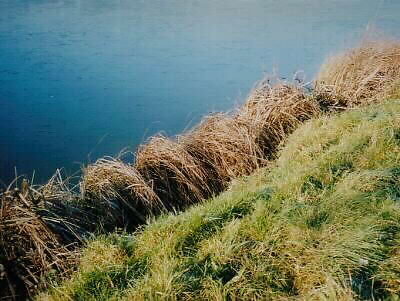 Rolled reeds beside a frozen lakeEingerolltes Schilf an einem gefrorenen See